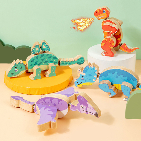 Atacado De Madeira 3D Estereótipo Magnético Building Blocks Montessori Crianças Animal 3D Dinossauro Puzzles para Crianças Criança